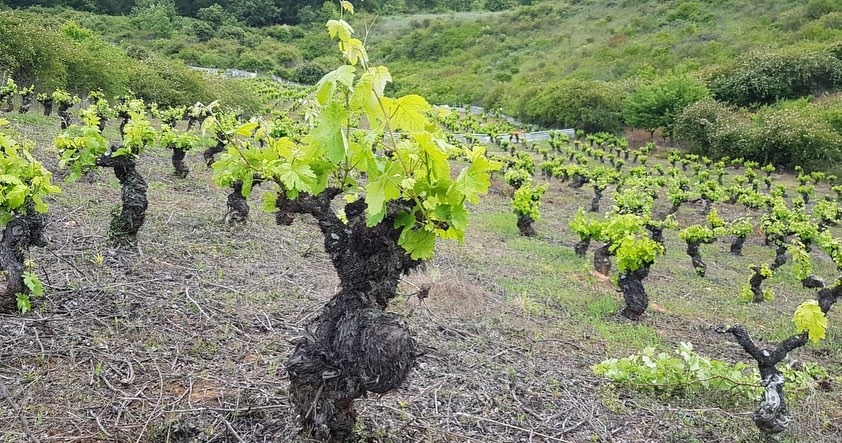 Cogemos una carretera hacia Cubillines y Posadilla y paramos a cada tramo para ver, una aquí y otra allí, las pequeñas parcelas. Nada tiene que ver con las grandes extensiones de viñedos de la Rioja o Castilla la Mancha. Son pequeños viñedos de cepas viejas, con un tronco maravilloso desde donde ya surgen con todo su esplendor las primeras hojas de la vid de un verde clorofila fascinante. Estas hojas, a partir de la fotosíntesis, comienzan ya a acumular moléculas de azúcares y de ácidos que influirán después en el sabor de la uva.