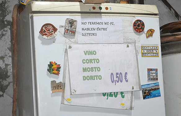 En las botellas no hay etiquetas ni presentación. ‘El que viene aquí ya sabe que es vino del Bierzo’. Un vaso de vino cuesta 50 céntimos. La botella -blanco o clarete- dos euros. El tiempo parece haberse parado en este local, decorado con carteles de películas clásicas del cine. ‘A mí, con esto, me llega para vivir. No todos somos Raúl Pérez ni Alvaro Palacios. Y como dice el dicho: el dinero no da la felicidad’. Y así es como El Niño sobrevive y mantiene con vida esta bodega centenaria, patrimonio único del Bierzo.