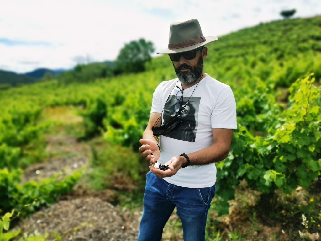A la vez, conocen a Javier y le proponen poner en marcha juntos este proyecto. ‘Yo empecé haciendo vino con mi padre. Él hacía vino para casa, para amigos… Yo no me dedicaba al vino, pero tenía amigos que sí como Raúl Pérez o Cesar Márquez’. En 2011, le propone a su padre trabajar los vinos de forma más elaborada. Compró tres barricas usadas para vinificar, buscó asesoramiento entre los amigos, le dieron un tiempo de crianza y lo embotellaron. El resultado fue excelente y ya no había marcha atrás. Se enganchó a la viña, a la enología y la elaboración de vino. Se dio cuenta que ya era algo más que un vino para casa, para reuniones con amigos, para compartir con conocidos pero no llegó a comercializarlo. ‘Registré una marca, Apología, pero nunca llegué a lanzarla comercialmente’. En 2015 conoce a Gerardo Michelini y Andrea Mufatto en su búsqueda de viñedos por el Bierzo y le proponen hacer un proyecto juntos. ‘Así fue como nace Vinos del Pueblo y me embarqué en esta historia, sin pensarlo demasiado, toda una locura’.