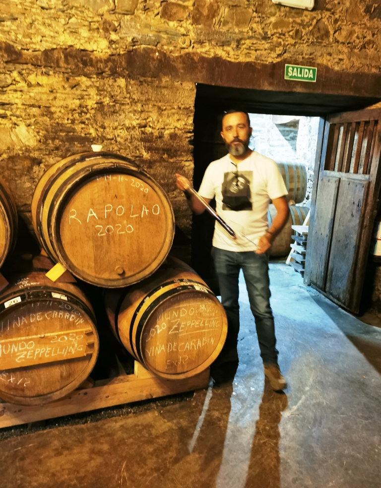 Alquilaron los bajos de una casa antigua en Toral de Merayo y allí montaron la bodega que hoy alberga Mundo Zeppelling y otros proyectos propios de Michelini y Mufatto y su hijo Manu. En ella, una prensa tradicional en la que se las han ingeniado para aplicarle un motor, 8 ánforas de barro, barricas de castaño y un precioso y reciente fudre. ‘No hace falta mucho más. El vino se hace en la viña y aquí tratamos de manipularlo bien, envecejerlo, observarlo y darle su tiempo. Esta es la magia del vino’, comenta Javier.