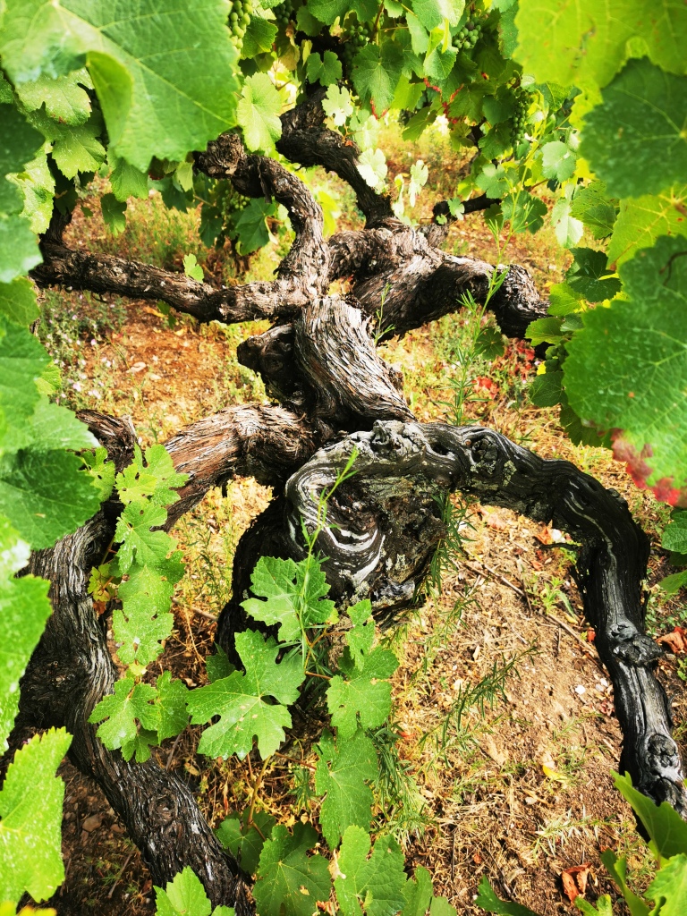 Recorremos los viñedos del Torullón entre un puzle de parcelas hasta llegar al mirador de la Dehesa, un lugar excepcional desde donde observar el valle cubierto de viñas. Por el camino, vemos viñas impresionantes. Cepas enormes, de gran tamaño, fuertes, con racimos de grano menudo y perfectos. ‘Nos gusta cuidar las viñas, que estén limpias, sanas, aireadas, sin herbicidas y con los tratamientos químicos justos. Es muy costoso trabajar así las viñas pero el resultado es increible’.