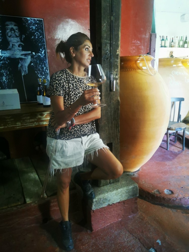 Cuenta con 5,5 hectáreas de viñedo y escoge con precisión las uvas de viticultores que le gustan por su ubicación y formas de trabajar las viñas. ‘Es todo viñedo viejo y el trabajo es manual, aramos la tierra, no usamos herbicidas y seguimos los códigos de la agricultura sostenible’. Ese trabajo minucioso y artesanal lo traslada también a la bodega con fermentaciones espontáneas, levaduras autóctonas, pisado de las uvas, bazuqueos manuales… ‘La selección del viñedo y el tratamiento del mismo es la clave del vino porque la mencía es pura fruta. A partir de ahí puedes hacer vinos muy bebibles, frescos, alegres o buscar resultados más complejos, más personales, informales porque tanto el godello como la mencía tienen mucha versatilidad y capacidad de guarda’. Y así es. Verónica Ortega trabaja con precisión con las ánforas de barro y las barricas de segundo uso para elaborar sus vinos. Es atrevida e inconformista y le gusta experimentar y conseguir que sus vinos, cuando los pruebes, tengan su firma personal. Y lo consigue en todos: cinco tintos (Quite, Kinki, Roc, Cobrana y V.O.) y dos blancos (La Llorona y Cal).