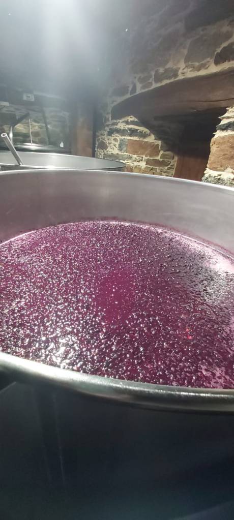 ¿Quieres probarlo ya? ¡Claro!, respondo ipso facto. La primera cata del mosto-vino de nuestro tanque nos sabe a gloria: mucha fruta, cereza, fresa, aún dulce… (La fermentación no ha terminado). No nos emocionemos, pero pinta bien.