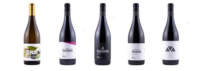Y elaboran cuatro tintos (mencía) y un blanco.Su entrada de gama es Cruz de San Andrés, en homenaje a su pueblo y a su bandera. Un mencía roble con seis meses de barrica muy vivo y muy sabroso. Buencomiezo procede de una única parcela de cepas viejas que envejece 12 meses en barrica de roble francés y un año en botella. Y el resultado es un vino elegante con los taninos perfectamente pulidos y en perfecta armonía entre la fruta y los aromas de la crianza. Montelíos es, como ellos le denominan, un vino de leyenda, de esa parcela de cepas centenarias, bajo el castro de San Andrés, con suelos de arcilla y pizarra descompuesta y ampliamente soleada hasta que se expiran los últimos rayos del sol del Bierzo. Producen solo 900 botellas. Las uvas fermentan con sus propias levaduras en depósito de inox para luego envejecer 18 meses en barricas de 300 litros y todo lo que precise en botella. ‘Es un gran vino de guarda’, afirma Adrián. Y completa la gama de tintos, Metáfora, una mencía de ánfora. ‘Seleccionamos las uvas de una parcela de 50 años del bahillo, recuperamos el pisado tradicional, con raspón y lo críamos en pequeñas ánforas de terracota’, nos cuenta Adrián, que reconoce que Metáfora es su debilidad. ‘Me encanta, es fresco, es frutal y con un marcado carácter mineral’. Sin duda, cuatro mencías excelentes, perfectos y claramente representativos del Bierzo a un precio insólito dado el trabajo y la calidad (entre los 8 y los 18 euros).