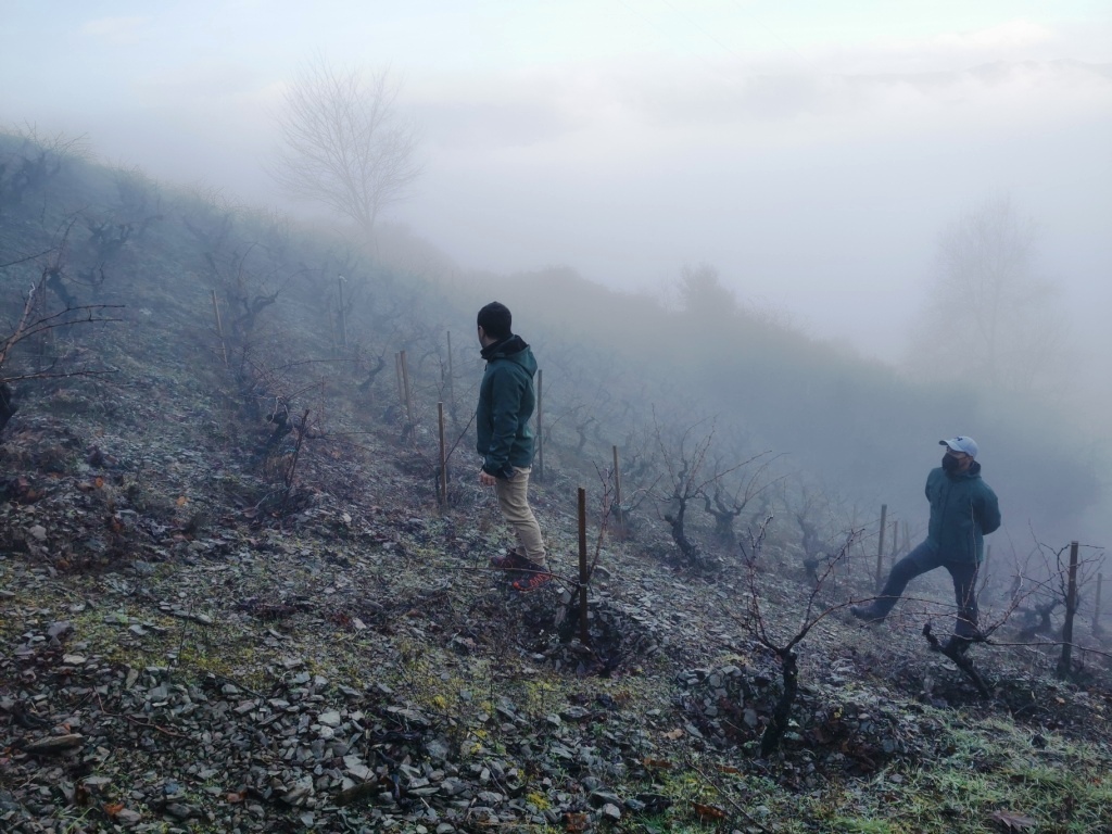 Es cierto que viticultura heroica en el Bierzo (condicionada por la dificultad que suponen las tareas de manutención de la viña y la vendimia, cien por cien manual y sobre una escarpada pendiente) hay mucha. Pero únicamente Pago de los Abuelos cuenta con la certificación internacional de CERVIM (Centro de Investigación, Estudio, Salvaguarda, Coordinación y Valorización de la Viticultura de Montaña y en fuerte pendiente), institución creada de en 1987 con el fin de apoyar y defender el trabajo y los derechos de los viticultores que se dedican a cultivar este tipo de terrenos. Todas sus parcelas se sitúan en la montaña, en condiciones orográficas difíciles, preservando el viñedo y el trabajo de generaciones pasadas cuya sabiduría y terquedad consiguieron adaptar el terreno y mantener esas cepas autóctonas durante siglos. Pago de los Abuelos ha situado así el Bierzo en el mapamundi de zonas con viticultura heroica que en España solo atesoran la Ribeira Sacra (Galicia), el Priorat (Cataluña) y las Canarias. ‘Es un homenaje a nuestros abuelos y a su duro trabajo porque gracias a ellos tenemos hoy estas cepas perfectamente adaptadas al clima y a la tierra, estos paisajes increíbles, y unos vinos con aromas y características únicas’, explica orgulloso Nacho Álvarez, enólogo y creador de Pago de los Abuelos.
