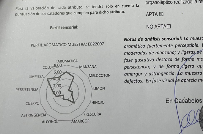 Del total de fichas de cata se hace un análisis estadístico de los datos que da lugar a un informe organoléptico y perfil sensorial del vino. Este informe se envía a las bodegas con la evaluación de apto o no apto. ¿Se ha dado algún caso de no apto? ‘Sí, claro que sí. Y entonces, se comprueba de nuevo con las botellas de testigo y, si se confirma que no cumple las exigencias de la DO, lo que tiene que hacer la bodega es desclasificar ese vino, desetiquetarlo y pasarlo a vino de mesa. Pero no puede comercializarse como DO Bierzo’