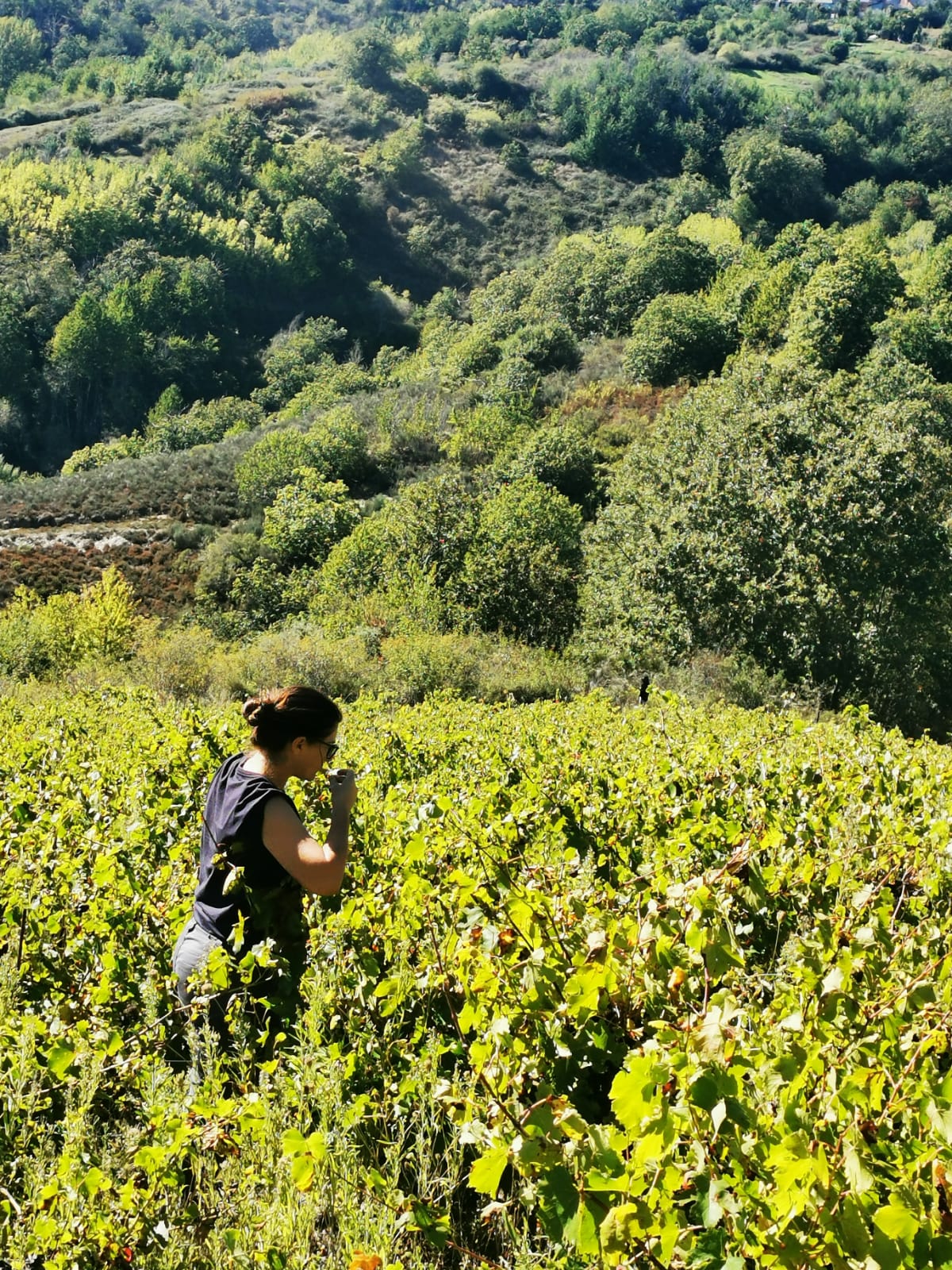 Juntos cultivan pequeñas parcelas familiares situadas en Hornixa, donde se encuentran los viñedos más altos y frescos del Bierzo, y en la zona de Rimor -donde residen con su hija Lucía-, a 10 minutos de Ponferrada. Allí compraron una viña situada en lo alto de un monte con vistas al valle, rodeados de cerezos y almendros. Una preciosidad donde realizan catas guiadas para amigos y visitantes. ‘Nos gusta traer a la gente aquí y que vean el origen, las viñas. Trabajamos el viñedo de forma sostenible. Tenemos mucho respeto por los suelos, las cepas viejas –que son nuestro mejor legado- y las uvas autóctonas’.