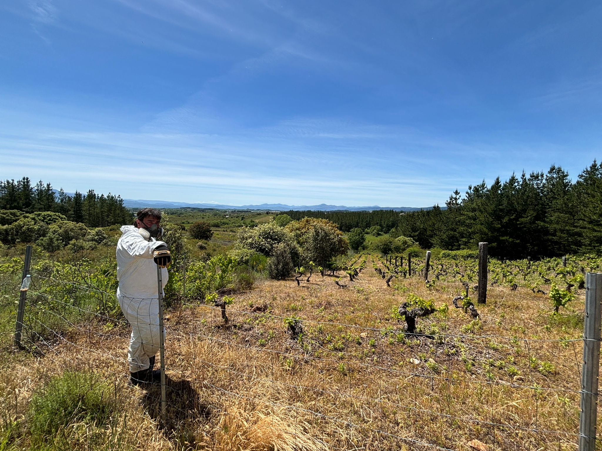 Pues ahí estamos. ¡Bingo! Las últimas semanas en el Bierzo, la regla se ha cumplido y 13 Viñas no arriesga. Es el momento de preparar las herramientas de sulfatado y prevenir. Hay que aplicar los tratamientos preventivos. Julio y Suso saltan rápidamente al ruedo: remolque, cuba, mangueras, mochilas, guantes, mascaras y trajes de protección. Y a rociar, una a una, las vides.