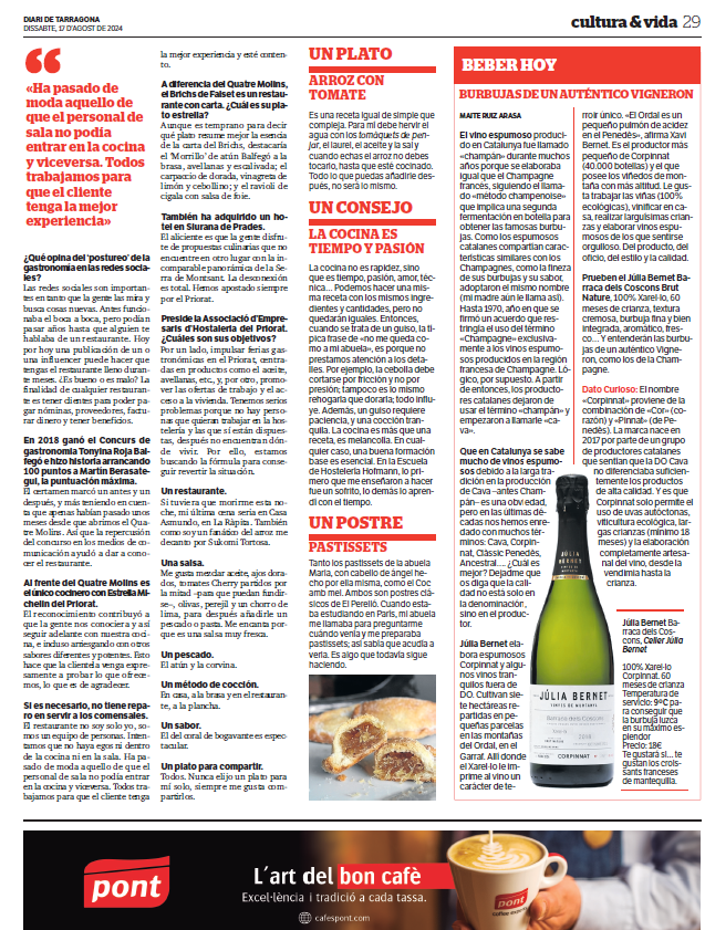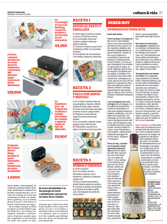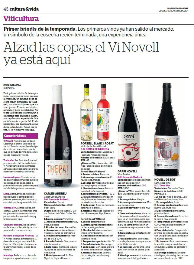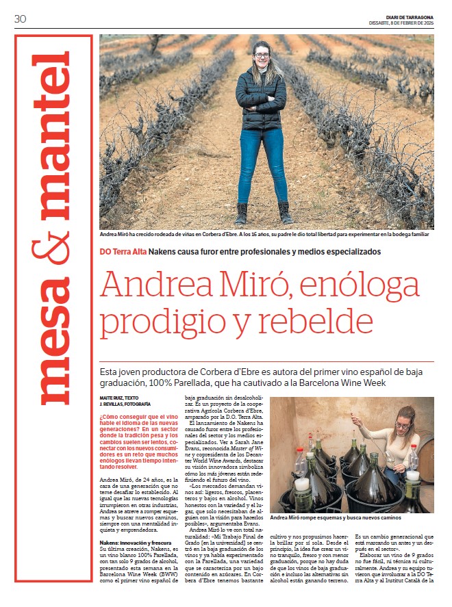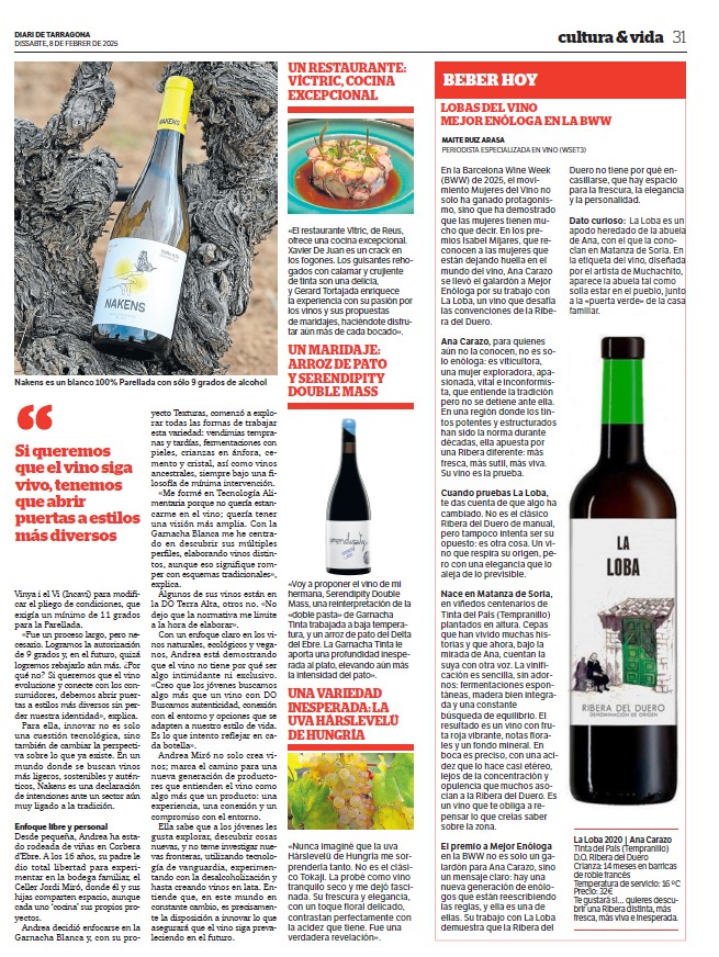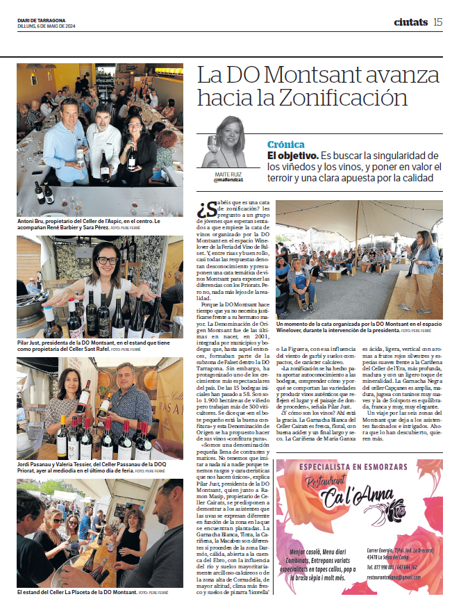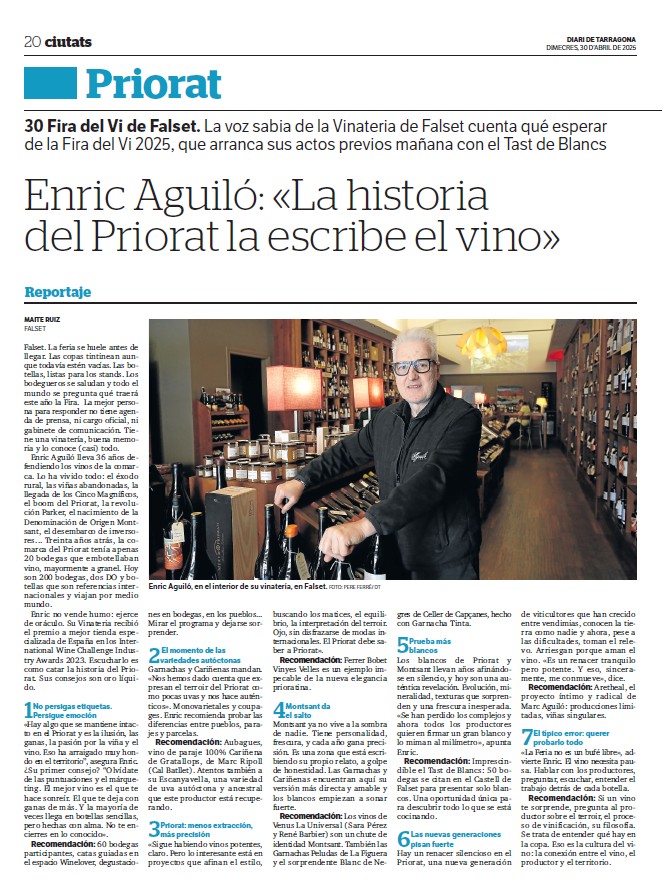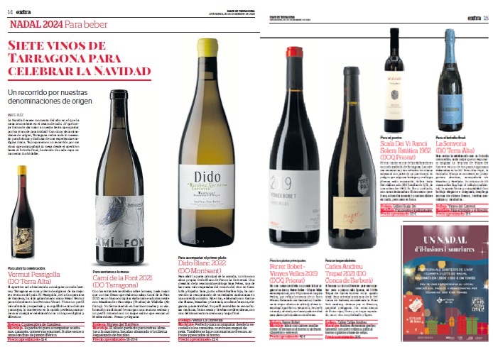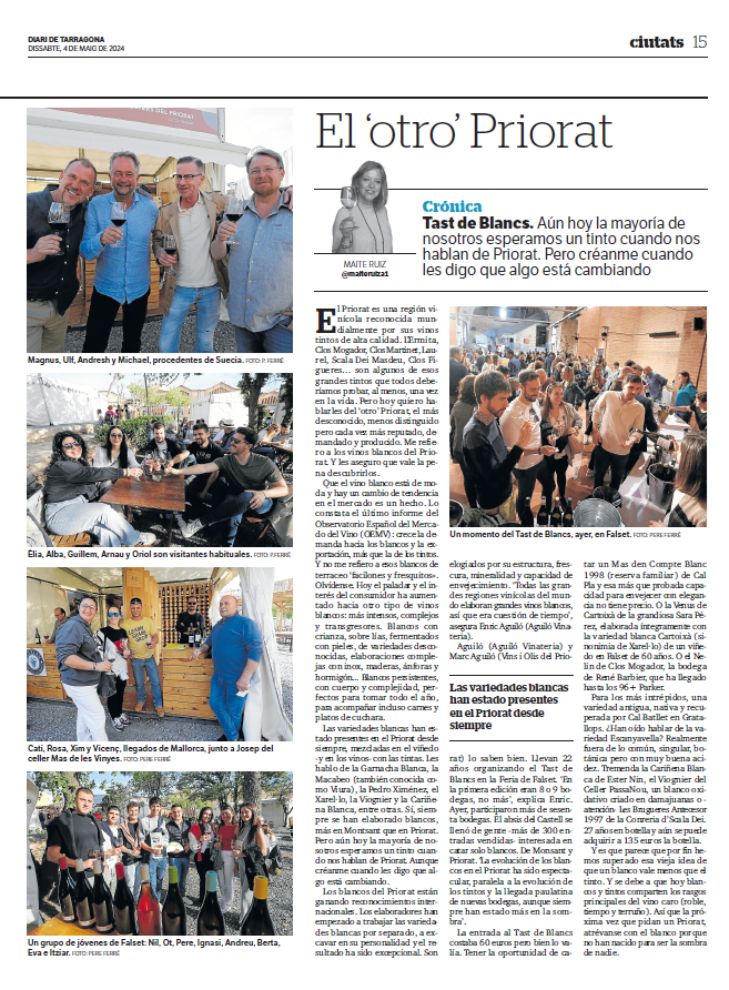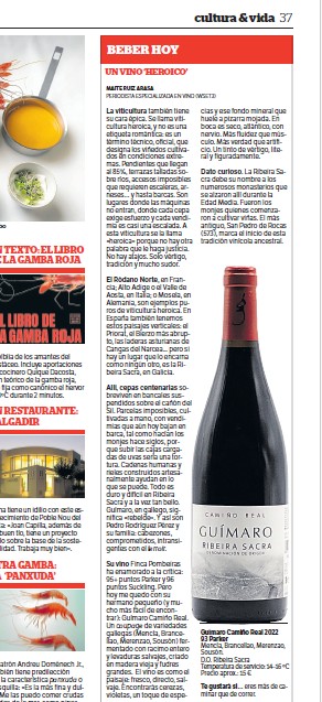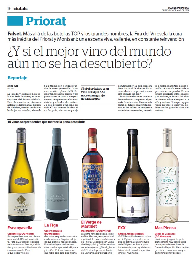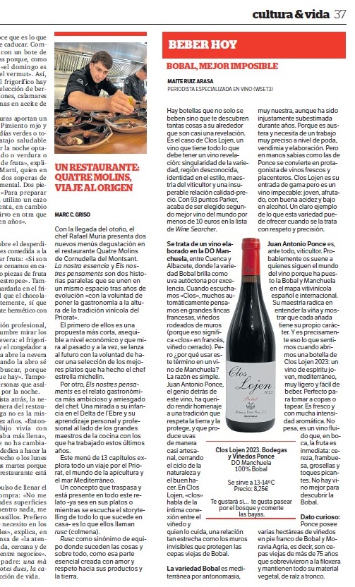 Vinos recomendados Publicado pormaiteruiza7 \\\\07\\\\Europe/Madrid julio, 20242 \\\\02\\\\Europe/Madrid octubre, 2025Publicado en Entre CopasEtiquetas:vinos recomendados Planetes Carinyena Blanca | Familia Nin Ortiz | DOQ Priorat El favorito de Giorgio Armani |Ordoñez&Co | DO Málaga (Axarquía) Tiempo de Garnacha | Aires de Garbet | DO Empordà El Trenzado de Tenerife | Suertes del Marqués| DO Valle de la Orotava Arroz Mediterráneo con Garnacha Blanca | Celler Edetària | D.O. Terra Alta El vino más buscado de Sudáfrica | The Chocolate Block Un vino para refrescar el verano | Ancestral | Amor per la Terra El secreto fresco de Mallorca | Motor Caller | Illes Balears ¿Fino o Manzanilla? | Pastrana | Jérez | San Lúcar de Barrameda Ribera también es asíMilú | German Blanco | Ribera del Duero Enric Aguiló: el ‘oráculo’ del Priorat | Vinatería Aguiló | Falset Universo Xarel·lo | Celler Credo | DO Penedès Un remedio contra el calor | Xalera Rosado | DO Terra Alta Enoturismo en Tarragona | Cinco planes con bodegas de vino Albamar es Galicia y viceversa | Albamar | DO Rias Baixas La Jefa, la que faltaba | Bodegas Matsu | DO Toro El pequeño gran vino de Sisseck | D. de Pingus | DO Ribera del Duero Llepolia natural | La Tribu del Millonari | Priorat Garnachas del Silencio | Frontonio | Valdejalón (Bajo Aragón) Los ‘nuevos’ Prioratos | DOCa Priorat y DO Montsant Un Vino Heroico | Guímaro | DO Ribeira Sacra Un brindis anti-Trump | Pinot Noir | DO Sierras de Málaga ¿Y si el mejor vino del mundo aún no se ha descubierto? | Priorat Los ‘nuevos’ Prioratos | DOCa Priorat y DO Montsant Es la hora del Vermut | Bodega Yzaguirre | Reus Garnacha Biodinámica |Celler Parès Baltà | DO Penedès Macabeu de Tarragona, si us plau | Mas Vicenç |DO Tarragona Vino Kosher | Celler Capçanes | DO Montsant Garnacha mediterránea de La Figuera | Ficaria Vins | Montsant Mucho más que el rosa |Chivite Colección 125 | DO Navarra Un Clásico es para siempre | Marqués de Murrieta | DOCa Rioja El renacer de la Moristel | Bodegas Fábregas| DO Somontano Lobas del Vino | Ana Carazo | La Loba | DO Ribera del Duero Díselo con Amor | Cava JOVANI | DO Cava Andrea Miró, enóloga prodigio y rebelde | BWW | DO Terra Alta El poder del mar | S’Amfora Mudèfer |Celler La Botera | 7 Vinos de Tarragona para celebrar la Navidad Vino de Reyes | Tokahi Aszu | Hungría Mishima, letras y vinos | Estones PX | DO Terra Alta Raúl Pérez, el mago del vino | Ultreia | D.O. Bierzo Un Priorat de lujo | Clos Mogador | DOCa Priorat Burbujas de altura | Can Sala 2013 | DO Cava Dulce final de sobremesaONE OFF #6| BellCros |DO Montsant Envidia Cochina | Eladio Piñeiro | Rías Baixas Un vino de película | Jean Leon 3055 | DO Penedès Solidaridad con Valencia | Vino 6º Elemento | Valencia Beaujolais Nouveau | Joseph Drouhin | Borgoña El secreto murcianoCasa Castillo | D.O. Jumilla Un Terra Alta al podio catalán | Celler Bàrbara Forés | DO Terra Alta Setas y Pinot Noir, maridaje otoñalArnaud Baillot | Borgoña ¿Seguro que es Txacolí? Malkoa de Astobiza | DO Arabako Txakolina El ‘Vi Novell’ | Descubre los productores de Tarragona Bobal, Mejor Imposible | Ponce Clos Lojen | DO Manchuela Un riesling catalán | Celler Batlliu de Sort | DO Costers del Segre Rioja&Roll | Bodegas Exopto | DOCa Rioja Blanc de Noirs, de Rasquera | Biopaumerà | DO Tarragona La Malvasía de Sitges |Celler Hospital de Sitges | Sitges Un Brisado de la Terra Alta | Herència Altès | DO Terra Alta Poboleda, Vino de Villa | Sandra Doix Celler | DOCa Priorat Palacios, pero del BierzoDescendientes J. Palacios| DO Bierzo Un Trepat fresquísimoCeller Carles Andreu | DO Conca de Barberà Un verdejo de los de verdad | Esmeralda Garcia | Segovia Garnacha sí pero peludaCeller Comunica| DO Montsant Burbujas de un auténtico vigneron | Júlia Bernet | Corpinnat Cata de Montsant | Zonificación Vino de Mujeres | Gratallops El ‘otro’ Priorat | Tast de Blancs | Falset Comparte esto: Compartir en X (Se abre en una ventana nueva) X Comparte en Facebook (Se abre en una ventana nueva) Facebook Más Compartir en WhatsApp (Se abre en una ventana nueva) WhatsApp Compartir en LinkedIn (Se abre en una ventana nueva) LinkedIn Relacionado Publicado por maiteruiza Periodista. Especialista en Vinos. Autora de El Viaje al centro del Vino Ver más entradas