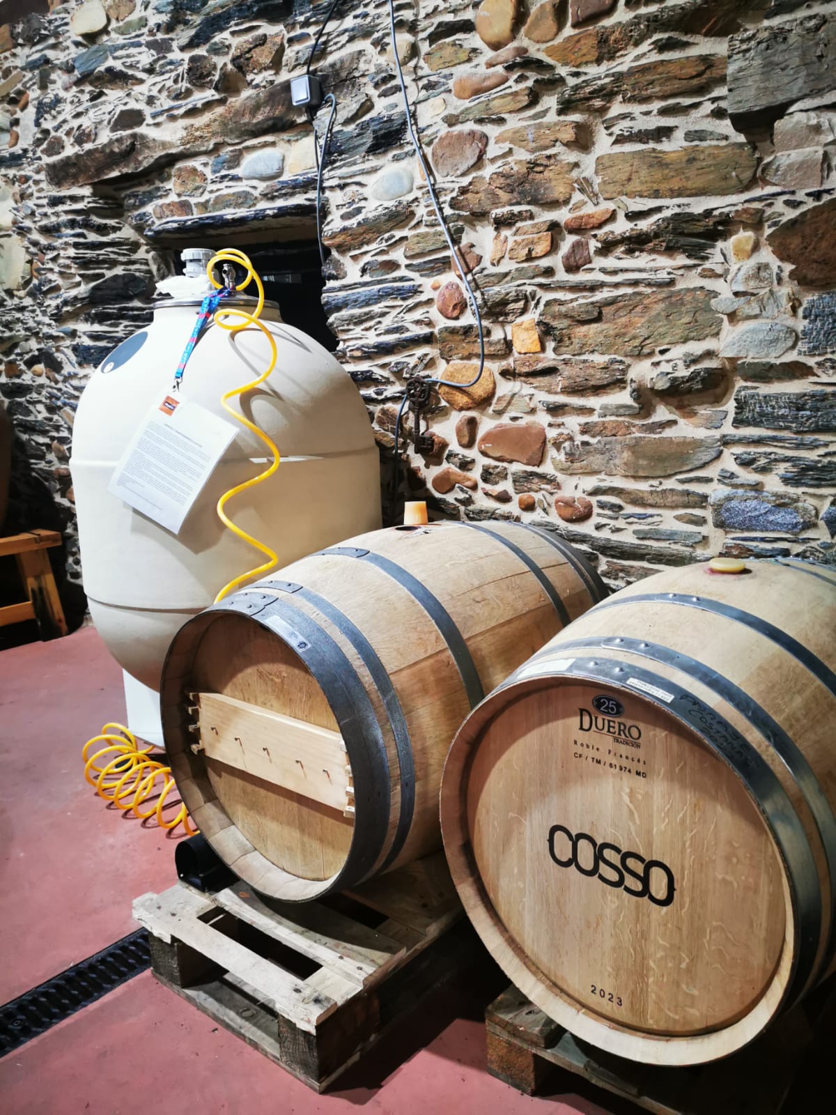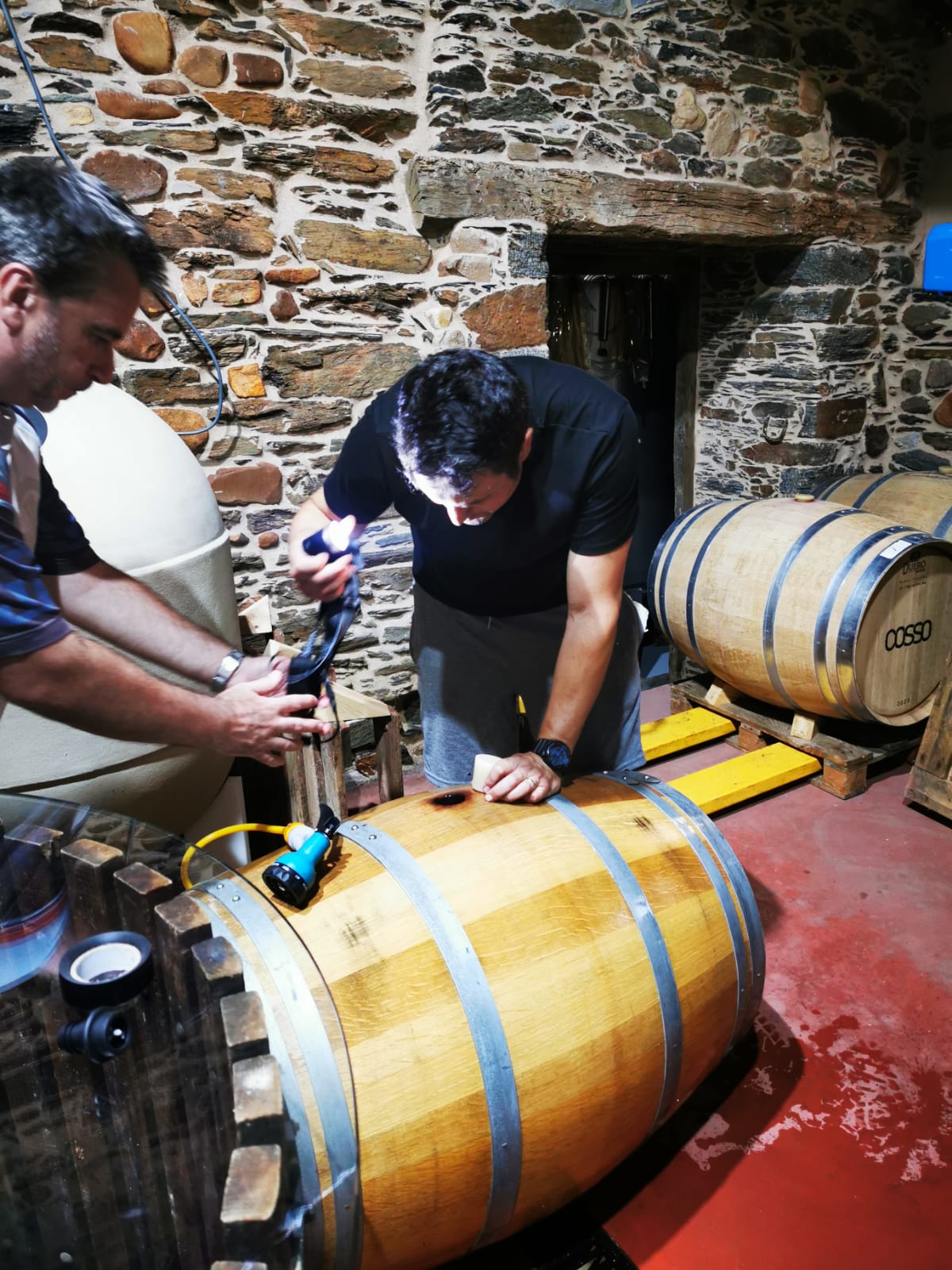 Julio me espera en la bodega para trasegar el vino. Lo catamos esta semana y sí, tras 11 meses en barrica, nos encontramos un vino ya redondo, que ha experimentado el proceso de crianza que queríamos y que está listo para beber. ‘Maite, está estupendo. lo encuentro muy fino, jugoso y ya para beber’, me dice Hermann, otro de los padrinos que ha venido para trasegar su vino tras 4 meses en barrica nueva de roble francés. Su proyecto COSSO es alucinante, así que os recomiendo que le deis un vistazo y no lo perdáis de vista. La verdad es que el proyecto de Apadrinamiento de 13 Viñas está siendo un auténtico campo de pruebas. Barricas nuevas, viejas, de roble americano, francés, huevos de hormigón, tinajas de barro… ¡Interesantísimo!