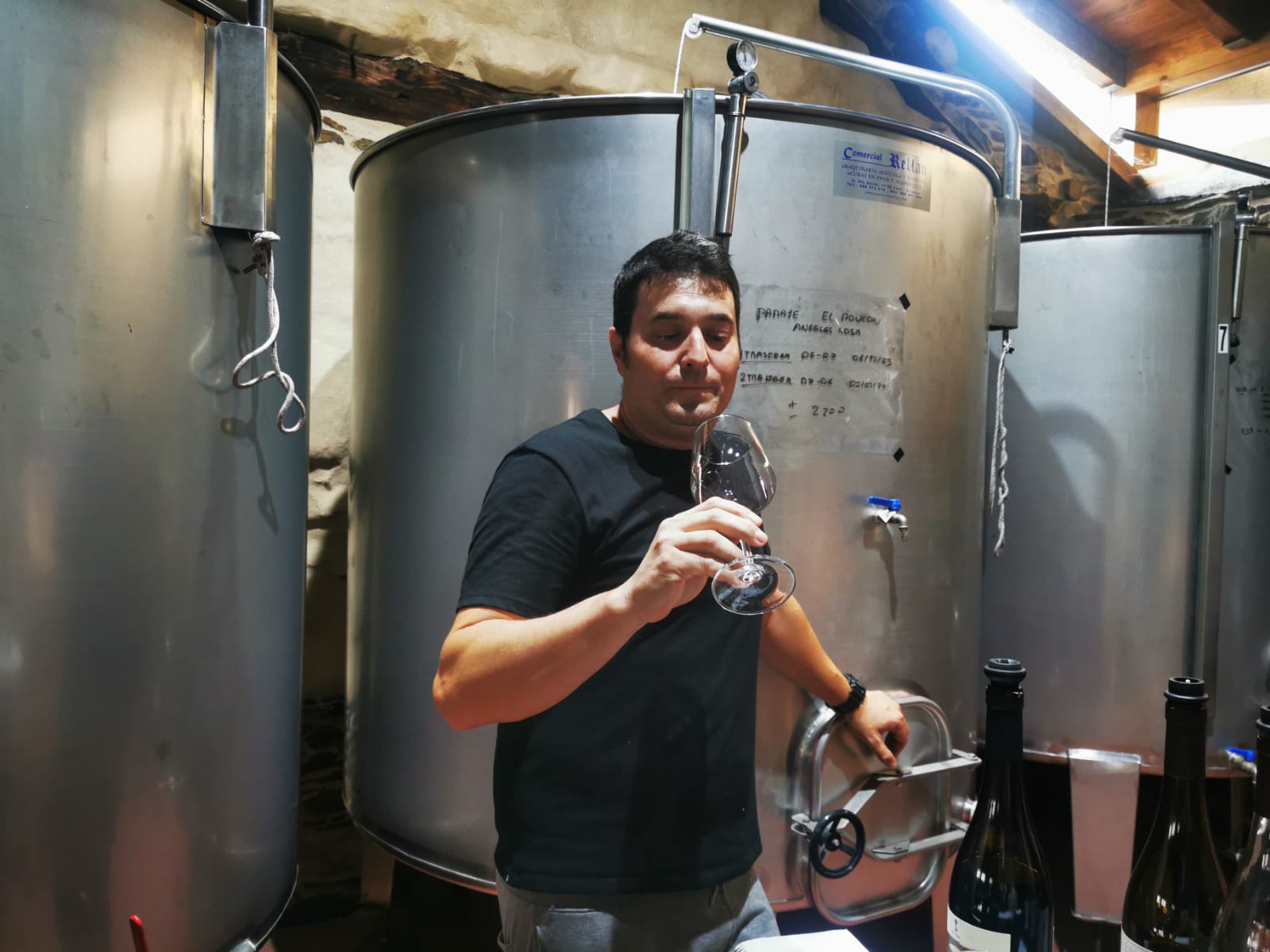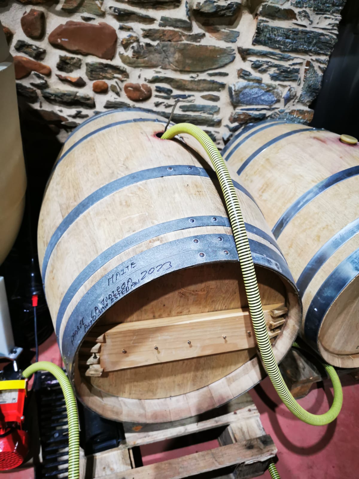 ‘Entonces qué Maite, ¿estamos listos?‘, me pregunta Julio. ‘Listos, sí’, le respondo sin dudar. Pues vamos a trasegar el vino de la barrica a un depósito de inox y lo dejaremos reposar unos días antes de embotellar.