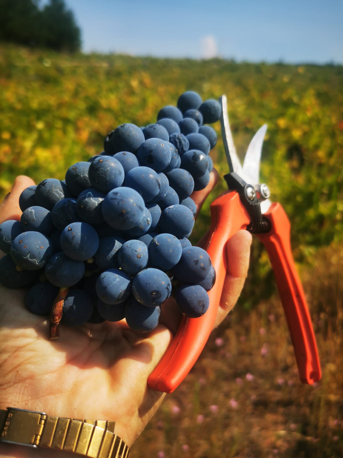 Una vendimia sin fotos… ¡no cuenta! Me hago fotos para el blog, documento el estado de las cepas y las uvas, las manos llenas de racimos, los selfies, el equipo en acción… Y no solo por el blog sino porque sé que las fotos serán el mejor recuerdo de una jornada de por sí inolvidable (y muy fotogénica).