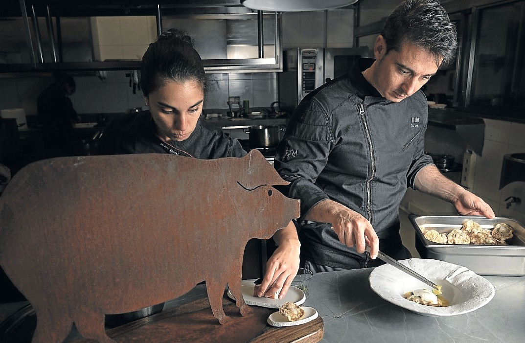 El menú gastronómico de Villa Retiro dedica una secuencia entera a potenciar este disfrute. «Las proteínas, las setas, los alimentos curados… todos ellos son umami», apunta López. La secuencia, llamada La matanza del cerdo, explora este sabor a través de distintas texturas y preparaciones. Desde el ‘Sándwich de ventresca de cochinillo, duxelle de setas y crema de queso curado’, la ‘Coca crujiente de manitas y oreja de cerdo, con papada a baja temperatura y tomillo’, un juego de texturas entre lo crujiente y lo meloso 100% umami. Y el ‘Suquet de manitas de cerdo, butifarra negra y espardenyes’. Aquí el umami se multiplica con el colágeno de las manitas, el sabor profundo de la butifarra negra y la delicadeza marina de las espardenyes.