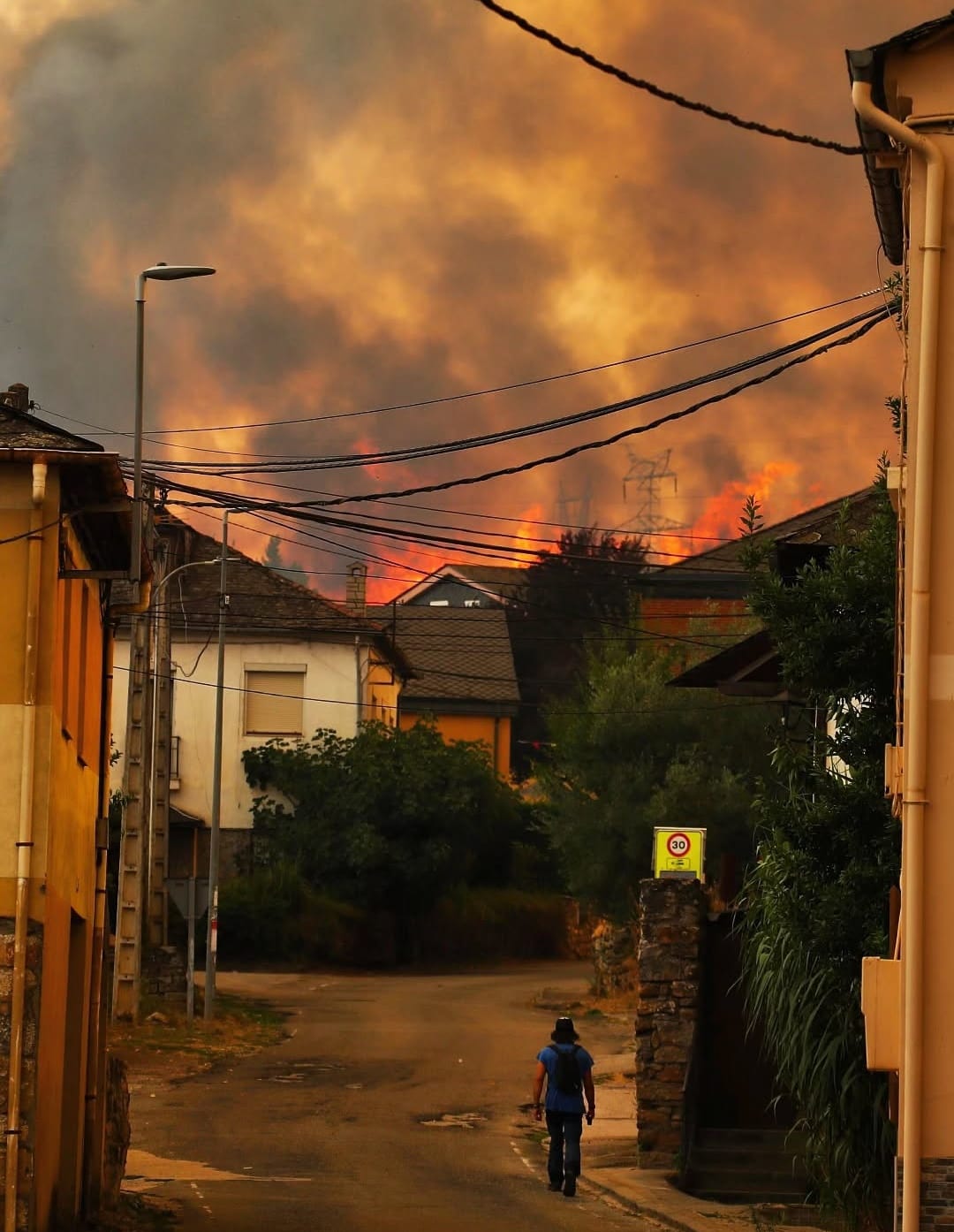 El Bierzo arde. Una semana entera con el cielo cubierto de humo, con cenizas cayendo sobre los pueblos, cubriéndolos de gris. El aire huele a madera muerta y a historia quemada. Los aviones sobrevuelan, no dan abasto, y las llamas se abren camino.