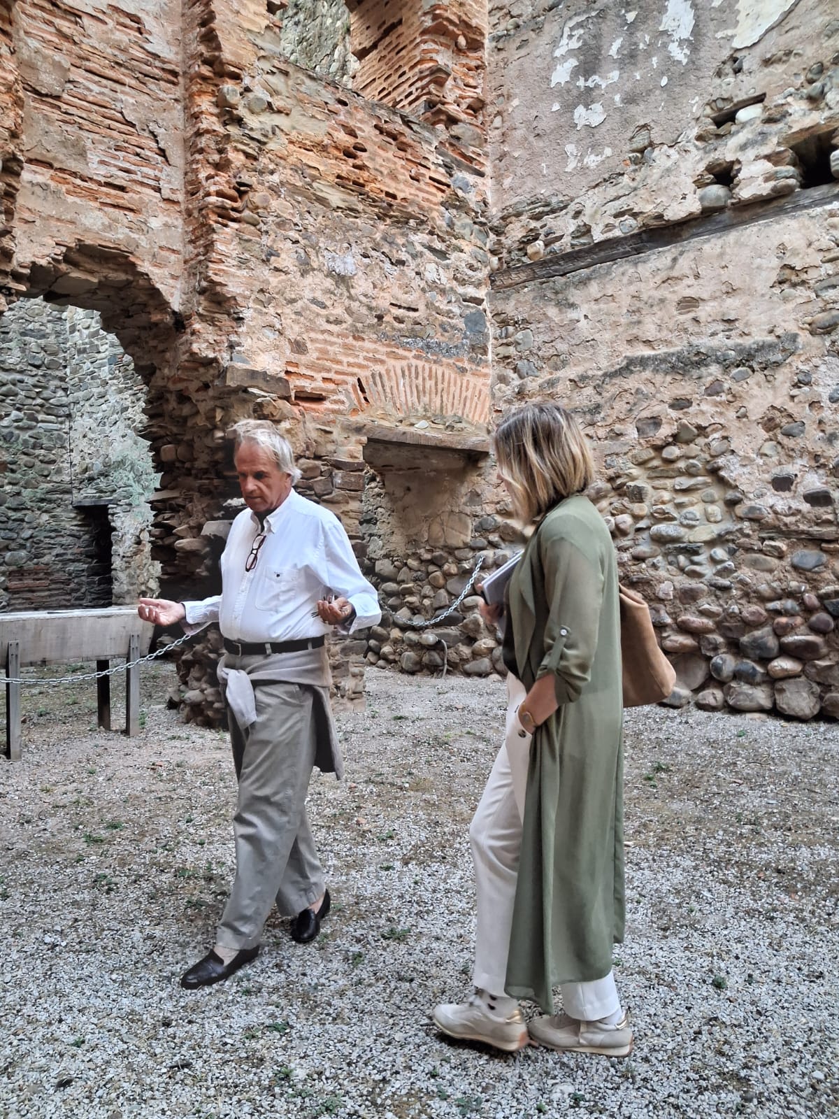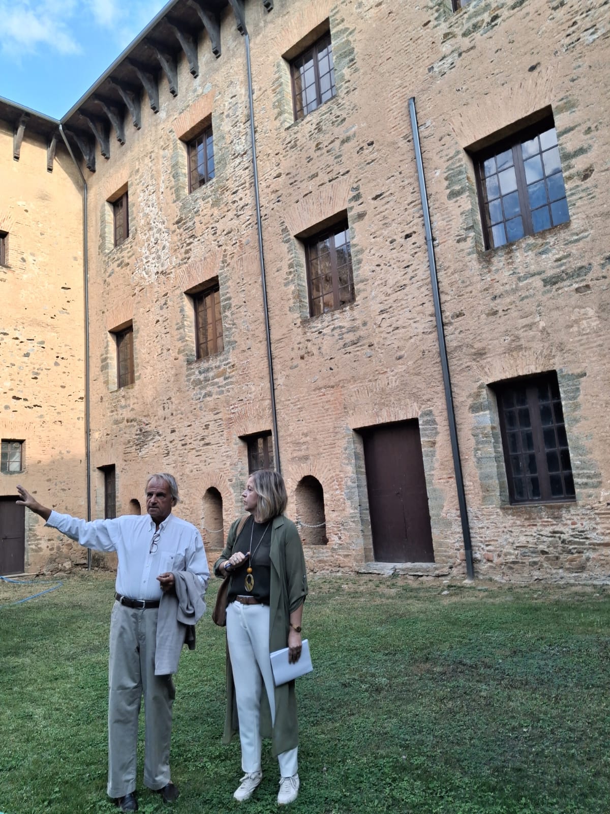 Paseando entre viñas, Alonso Halffter me va contando la historia del Castillo y las piedras nos van mostrando todas las capas. Aquí nació en 1486 el marquesado de Villafranca, cuando los Reyes Católicos confiaron estas tierras a los Álvarez de Toledo, uno de los linajes más poderosos de Castilla. El segundo marqués, don Pedro de Toledo, virrey de Nápoles, terminó la construcción junto a su esposa María Osorio y Pimentel. Y aquí el giro italiano: su hija Leonor se casó con Cosme de Médici. De pronto, este rincón del Bierzo se convirtió en puente cultural con la Florencia renacentista. No hablamos solo de nobleza y títulos: hablamos de un Castillo que absorbía música, arte, libros e ideas que viajaban desde Italia hasta el Bierzo.