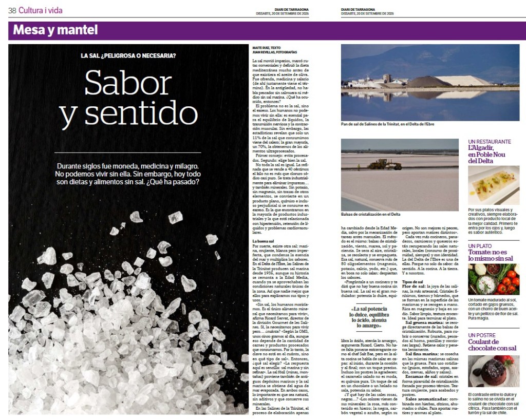 Cada vez más cocineros, panaderos, carniceros y queseros están recuperando las sales naturales, locales (consumo de proximidad, siempre) y con identidad. La del Delta del Ebro es una de ellas. Porque no solo da sabor: da sentido. A la cocina. A la tierra. Y a nosotros.